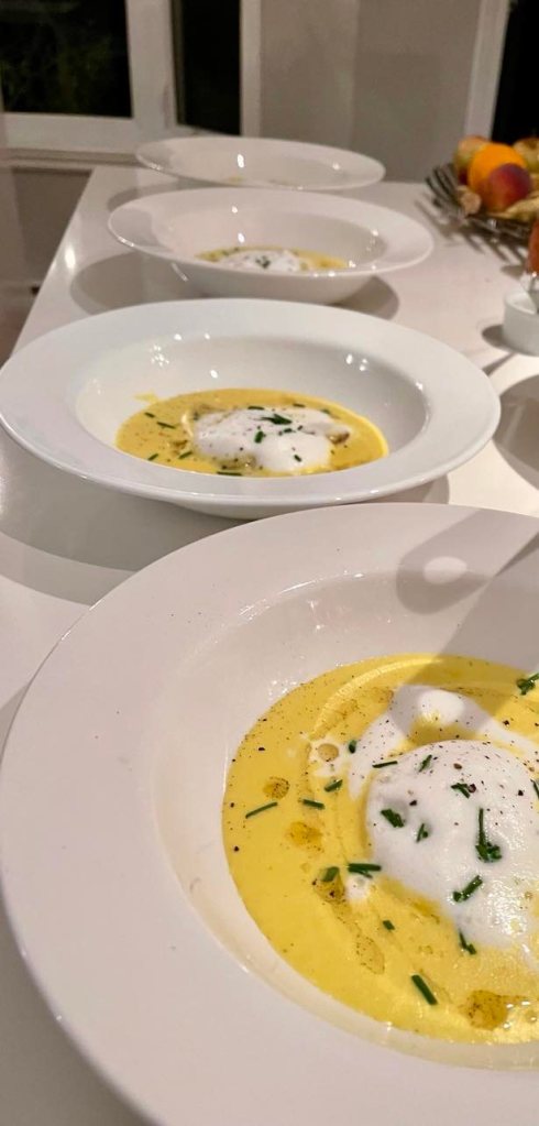 - Bien mixer au Thermomix ou au mélangeur puis passer au tamis afin d’obtenir une substance lisse sans grumeau. Vérifier l’assaisonnement et réserver.
