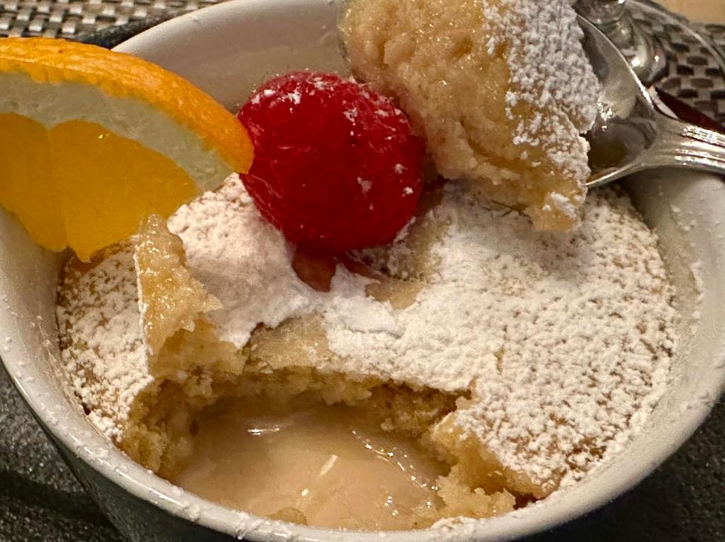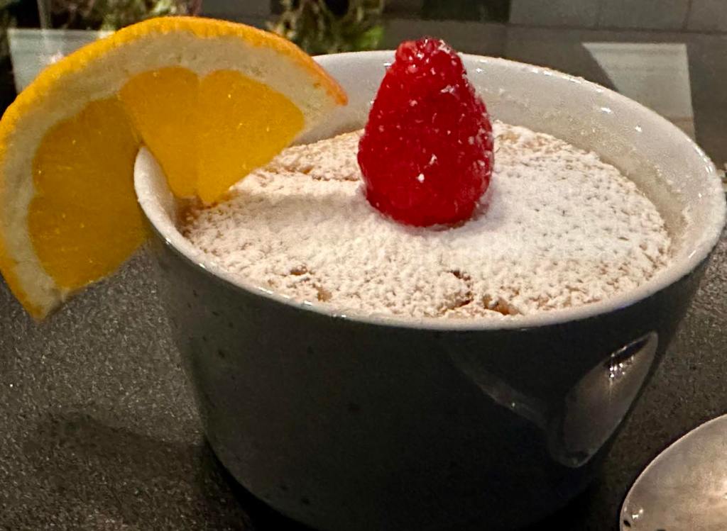Au choix, garnir de sucre glace et d’un morceaux d’orange ou accompagner de crème glacée à la vanille ou à l’orange.