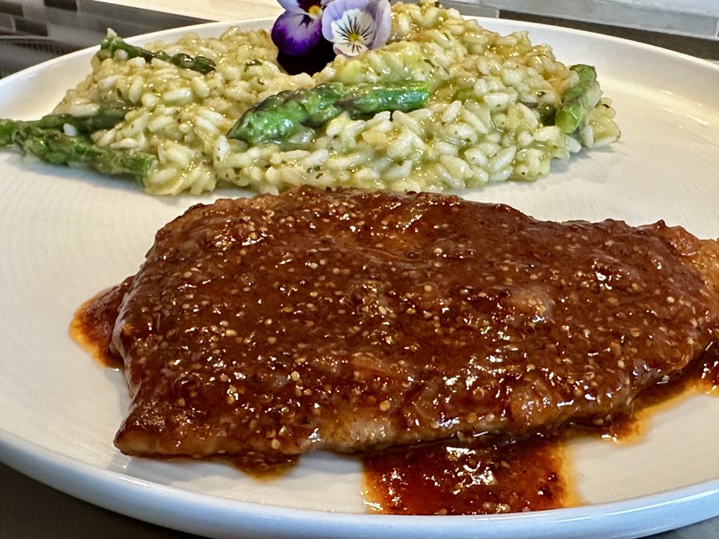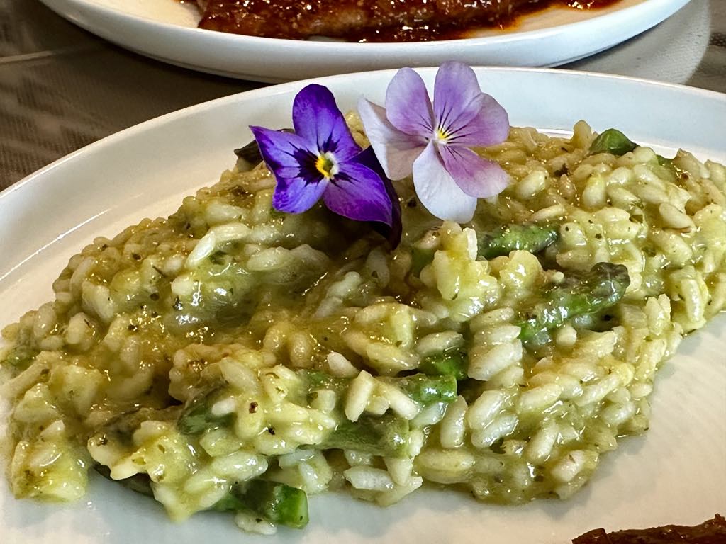 Note: On préfère le risotto bien crémeux. Conséquemment, à la fin de la cuisson et après avoir ajouté la purée d’asperges et d’épinards, au besoin, ajouter un peu de bouillon de poulet chaud pour obtenir la consistance voulue.